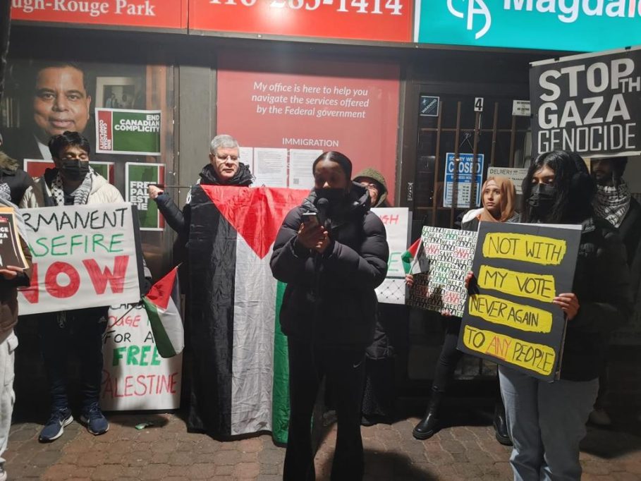 நேரடியாக ஒளிபரப்பப்பட்ட இஸ்ரேல்-ஹமாஸ் போர் நிறுத்த கோரி – Canadian minister Gary Anandasangareeயின் அலுவலகத்திற்கு முன்பாக பேரணி