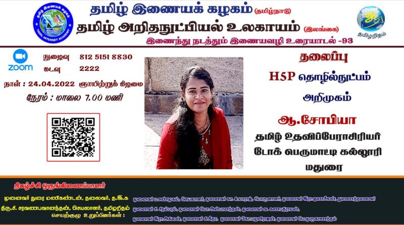 மேலும் படிக்கதமிழ் அறிதநுட்பியல் உலகாயம் (இலங்கை) இணையவழி உரையாடல் 23.04.2022 சனிக்கிழமை பிற்பகல் 7.30-8.30